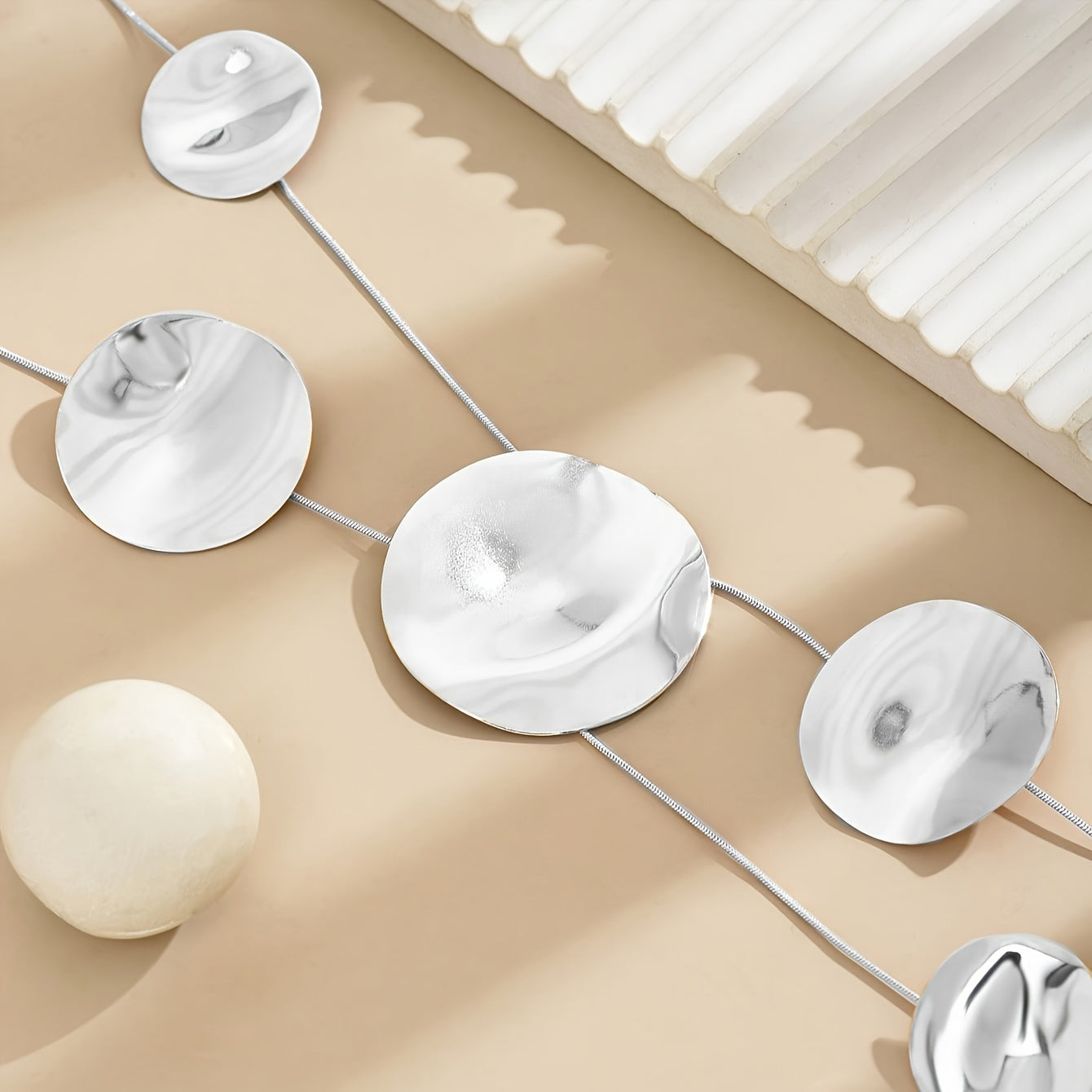 Textured Disc Necklace, Handmade Multi-layer Pendant Chain Women's Jewelry, Rust-proof And Hypoallergenic Designer Accessory For Party Daily Wear